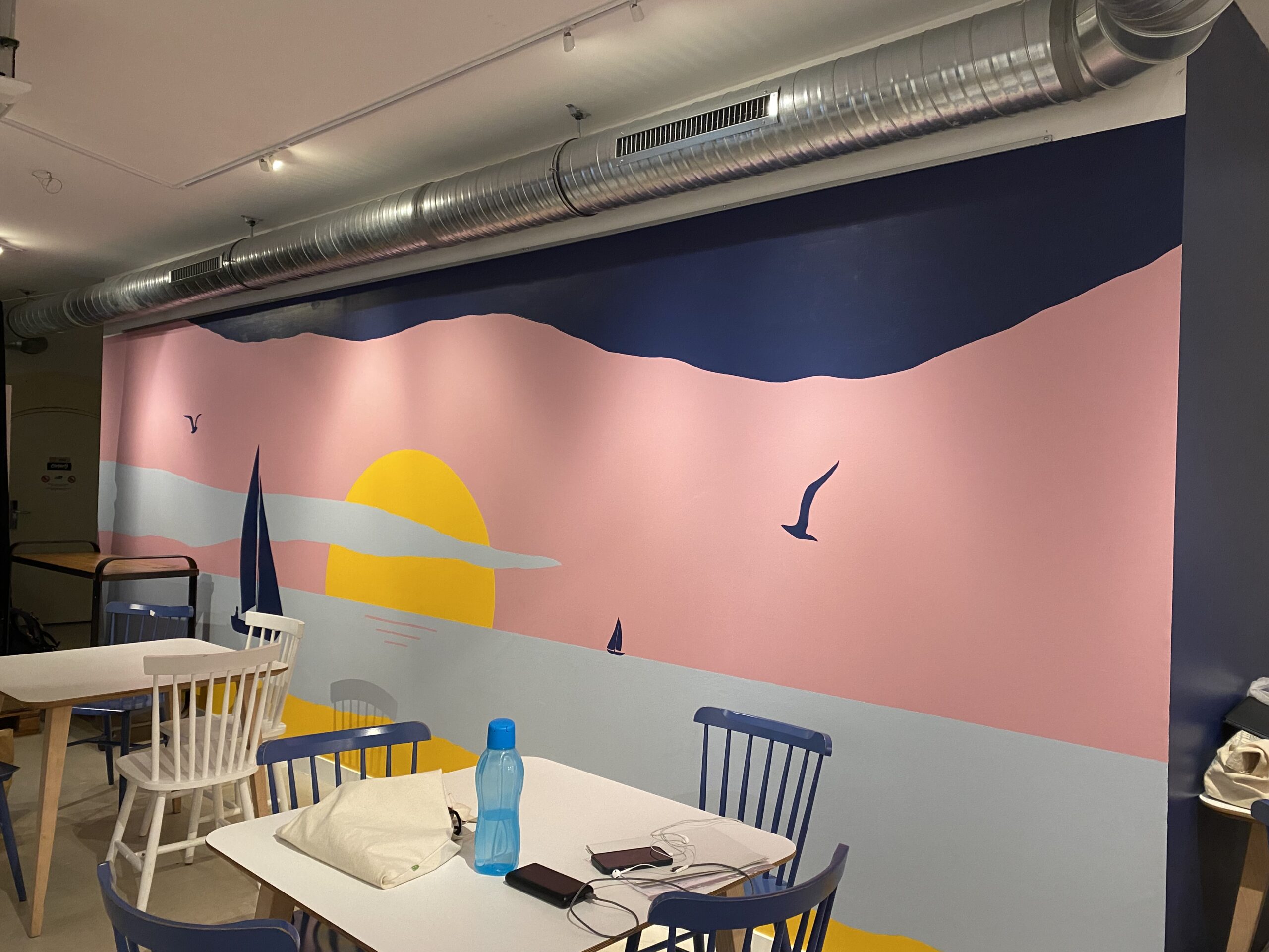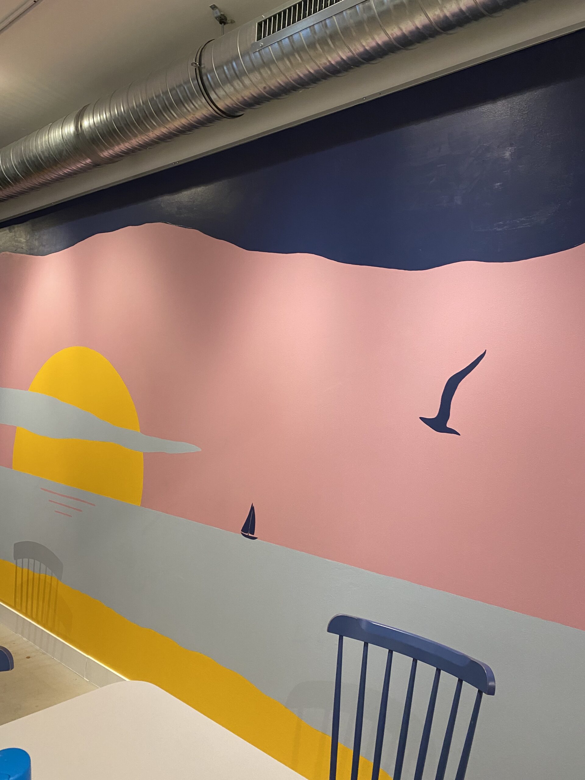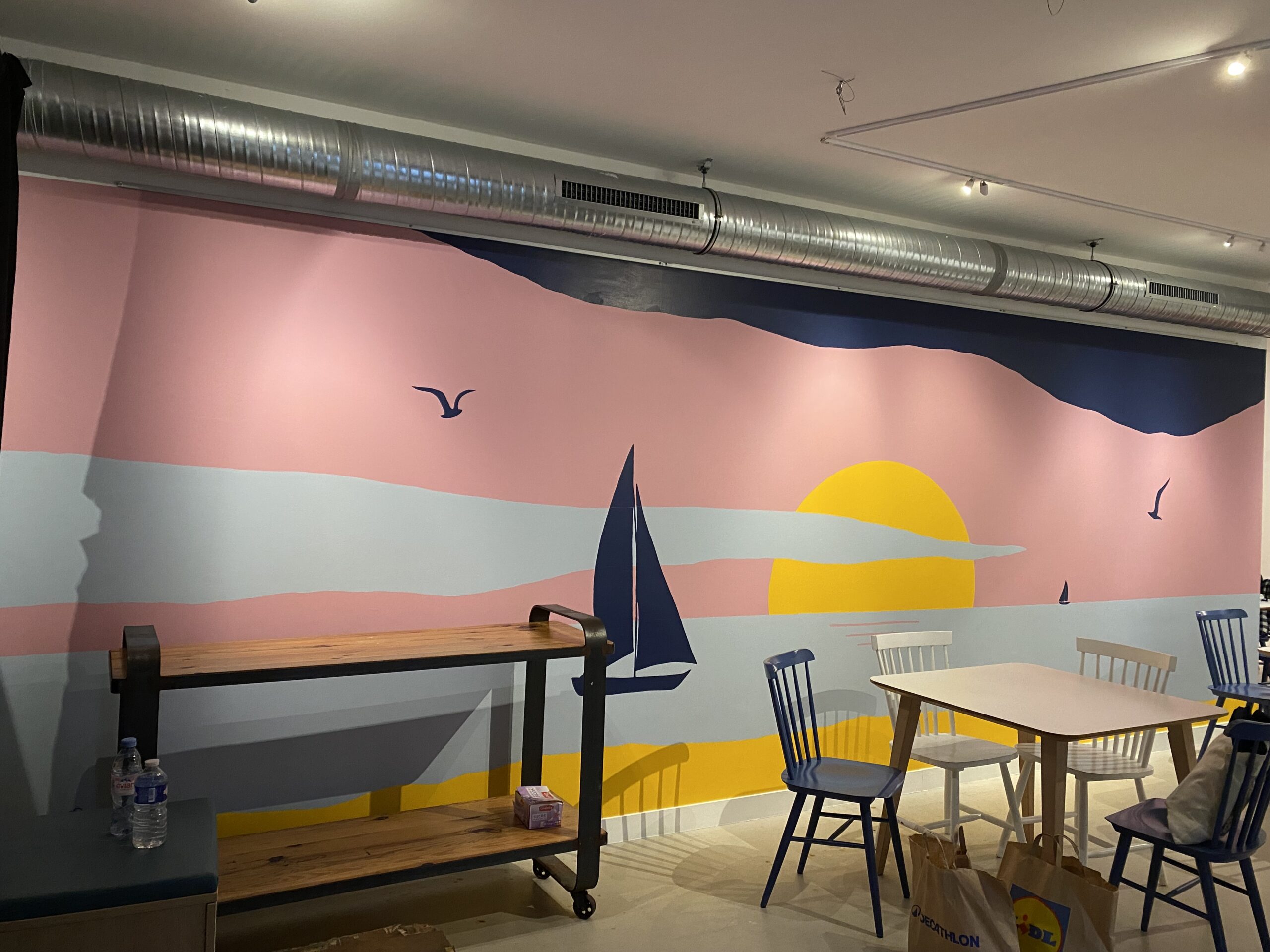 The People Marseille m’a confié la création d’une fresque aux couleurs de leur identité. Un décor méditerranéen immersif qui évoque le Sud, la chaleur et l’évasion.